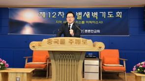제12차 특별새벽기도회 말씀 찬송가445장 요14:1~4절 요14:1 <내가 곧 길이요 진리요 생명이니> 너희는 마음에 근심하지 말라 하나님을 믿으니 또 나를 믿으라 요14:2 내 아버지 집에 거할 곳이 많도다 그렇지 않으면 너희에게 일렀으리라 내가 너희를 위하여 거처를 예비하러 가노니 요14:3 가서 너희를 위하여 거처를 예비하면 내가 다시 와서 너희를 내게로 영접하여 나 있는 곳에 너희도 있게 하리라 요14:4 내가 어디로 가는지 그 길을 너희가 아느니라 새벽기도처소를 허락해주소서 우리는 하나님을향하여가는 그길이 있습니다 한걸음 한걸음 주예수와함께 날마다날마다 우리는걷겠네 모든 인생의 하나님향하여 가는길은 굴곡이 많습니다 험한준령 때로는 폭풍이몰아쳐도 천성을 향해 한걸음씩 가는것입니다 그러기위해서 주님이 붙잡아주십니다 우리는 영원한생명을 위하여 시간시간 새벽부터 밤까지 웨치며 나아갑니다 가는길이 결코쉽지는 않지만 하늘나라 천국의 소망이 있습니다 믿고 하나님인도따라 가면 영생의결실이있습니다 우리는 분별력을 갖고 신앙생활해야합니다 하나님과 이땅이 구분되야합니다 세상을 등지고 하늘나라 가야합니다 예수님만이 나의 처소다! 나의 믿음은 예수다 그것이 생명이다 천성길은 쉬운길이 아니다 우리는365일을 새벽부터 달려야합니다 세상은 선악과가 많다 그러나 우리는 그 선악과를 따먹지않는다 하늘나라소망이 있기에 끝까지 노력한다 육신의 이익을 쫓지말고 부활의 소망이있는 성령의 유익을 쫓자 너희이름이 하늘에 기록된것에인하여 기뻐하라 주님이 가까워질수록 내 소망은 더 탄탄해지리라 진리를 순종하는자들은 하나님이 도와주신다 성령이 역사한다 영원한 생명에의지할수 있도록 진리안에 있자 나는 세상에 속한자가 아니요 하늘에 속한자다 나는 성령으로 살리라! 뼈속까지 영혼에 담자! 천국가는길을 도와주려고 처소를 만드는것이다 소망가운데 힘들지라도 포기하지말고 끝까지 예수따라가자